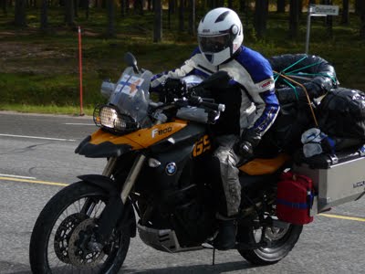 Pikku säätöä oli Pekalla heti alkumatkasta. Juuri huolletun Adventuren takajarrulevy meni soikeaksi jo Tampereen ja Jyväskylän välillä. Huollossa vaihdettu jarrunesteet ja laitettu liikaa. Jarrusylenteri täyttyi ja alkoi painamaan takajarrua lukkoon. Levy kuumeni ja meni soikeaksi. Hätiin saatiin Kuvan Moottoripyöräpalvelu Jyväskylästä. Uusi levy otettiin saman tien vaihtopyörästä ja matka jatkui.